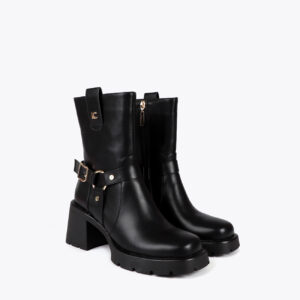 BOTAS DE TACÃO ESTILO MOTOCICLISTA COM DETALHES METÁLICOS