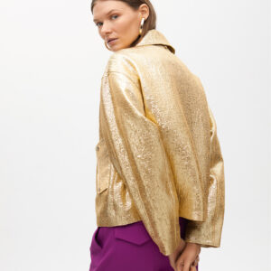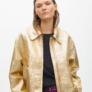 BOMBER EFEITO COURO COM MANGAS MORCEGO E CAPUZ