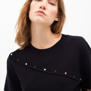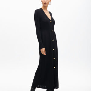 VESTIDO DE MALHA COM SAIA EVASÉ E BOTÕES
