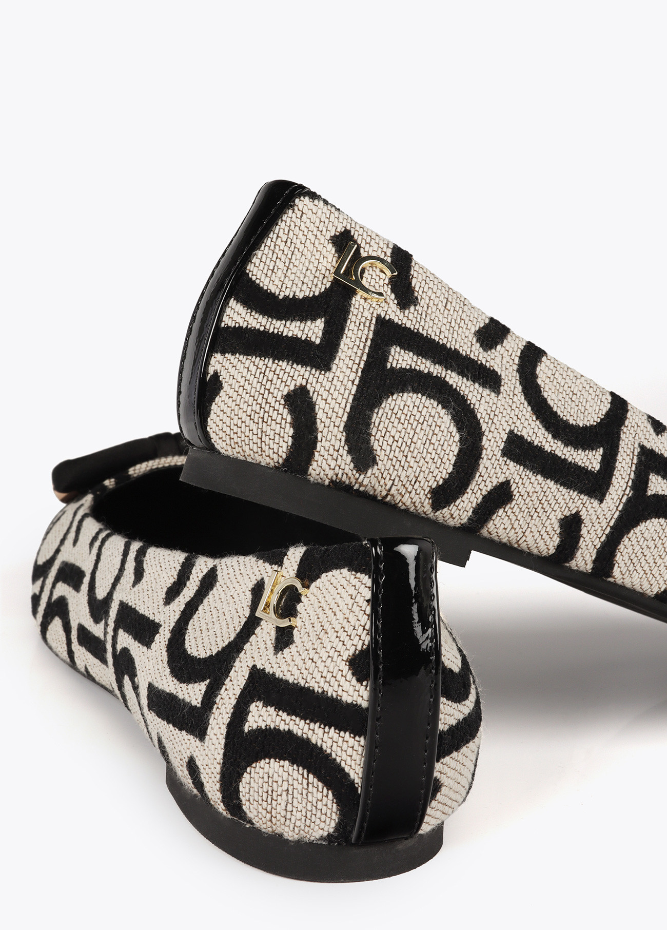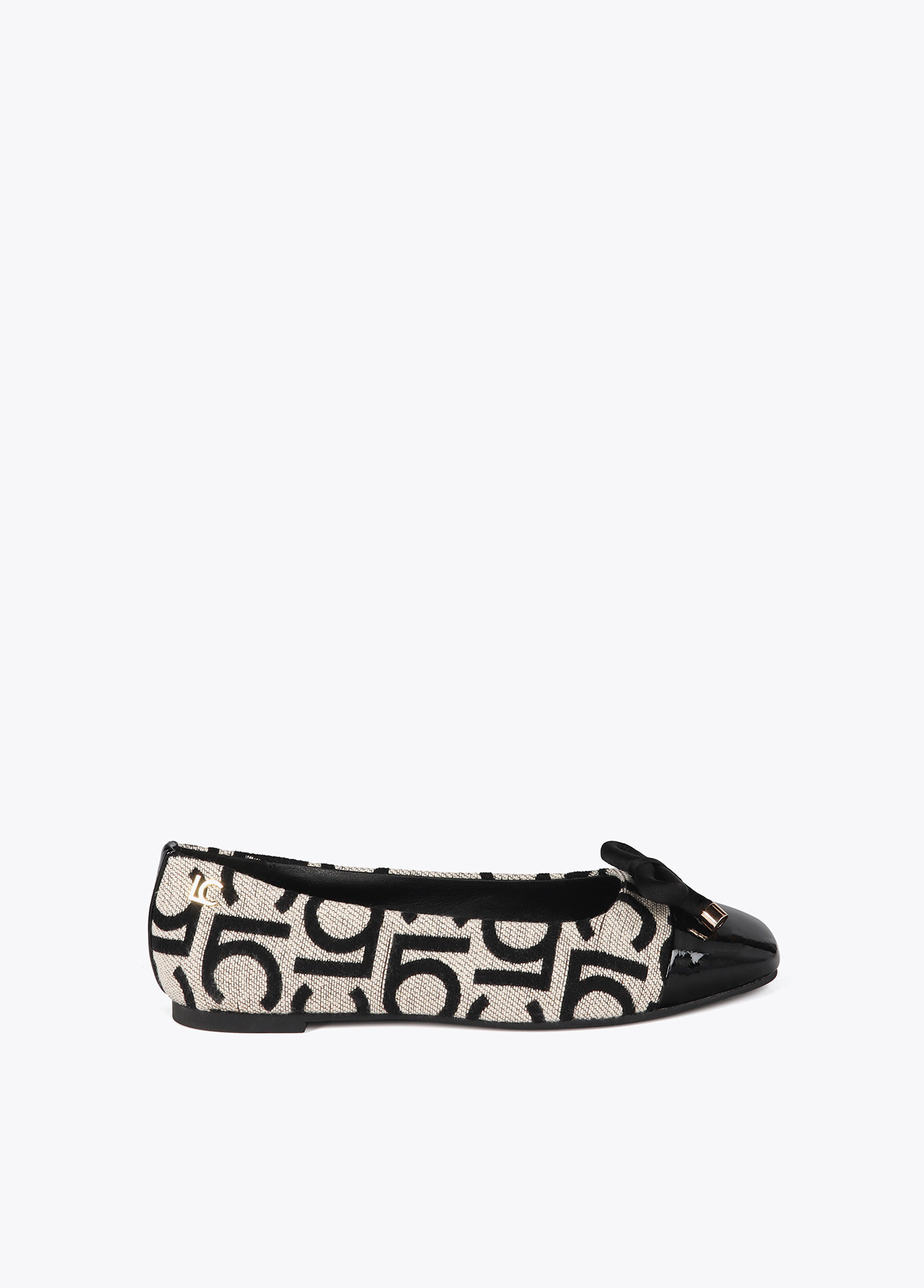 Bailarina elegante com bico redondo e detalhe de laço na parte frontal. Confeccionada em material estampado com logo, forro interior suave e confortável. Sola flexível e plana para conforto durante o dia todo. Ideal para complementar qualquer look casual ou formal.