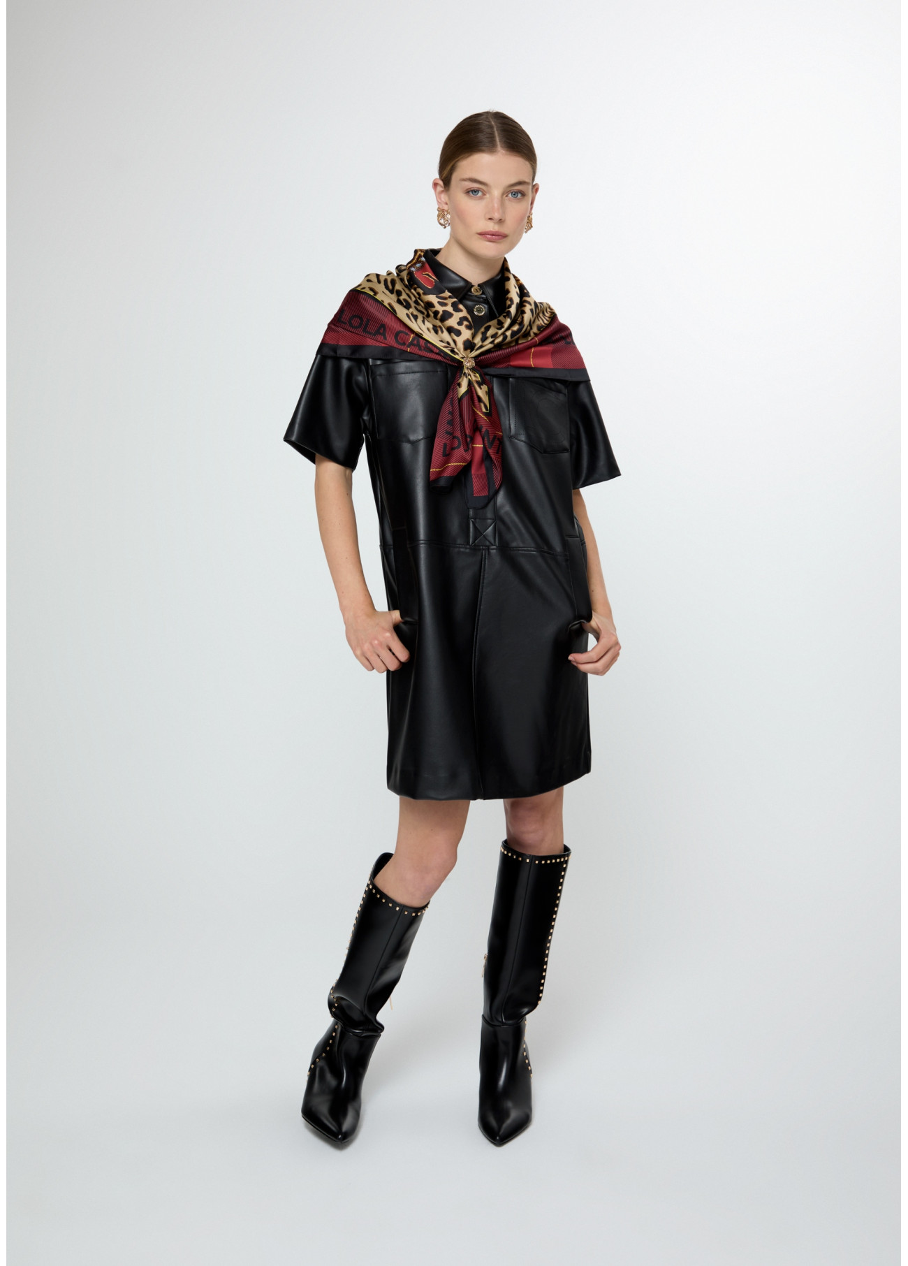 Lenço de qualidade superior com design animal print combinado com estilo tartan. Feito de tecido macio e resistente, ideal para adicionar um toque distintivo e elegante a qualquer conjunto. Logotipo Lola Casademunt em destaque.
