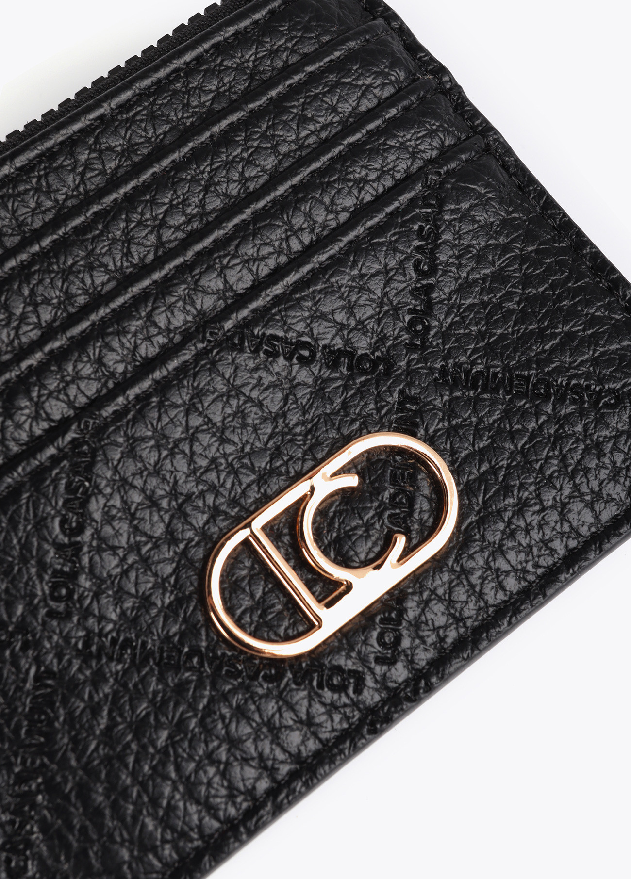 Porta-cartões compacto em material texturizado com monograma em padrão de losangos. Dispõe de várias ranhuras para cartões e de um compartimento com zíper. Apresenta ainda um elegante detalhe de logótipo metálico.